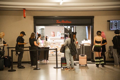 Funmi had time to kill after her Tim Hortons stop, so she wandered the hall with the glass exhibitions behind Gate 17. At the far west end, a display with fun facts caught her attention, and she stopped to read.