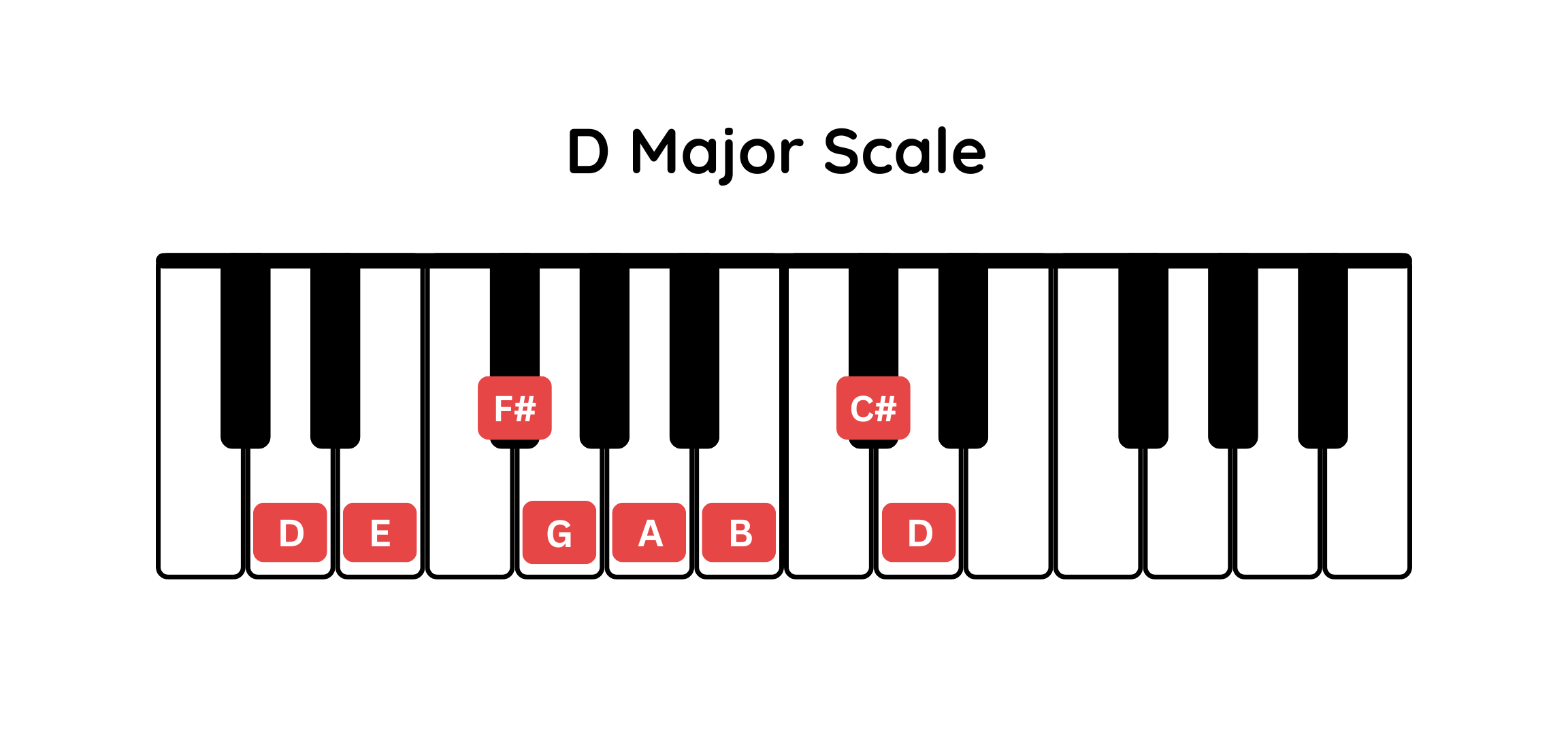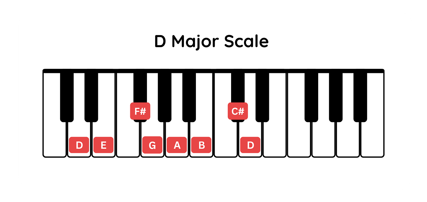 1: D (D major chord) → D, F#, A